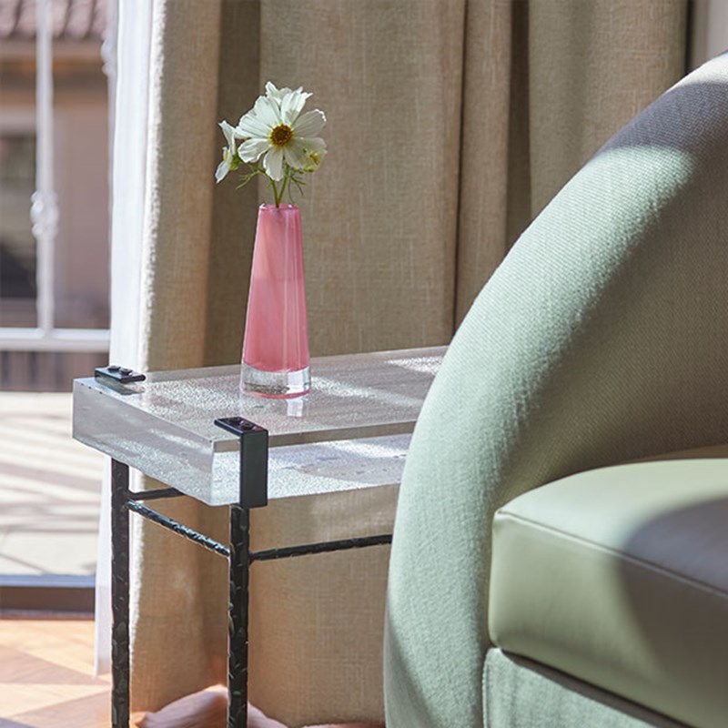 Step into this light-filled suite and into the mind of a creative visionary. Designed by Bryan O’Sullivan, organic textures and pastel hues are the perfect complement to the never-ending blue skies beyond – with dual-aspect windows that put Hollywood center stage.